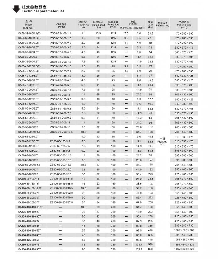 La pompe centrifuge en acier inoxydable de la série CA, dont le corps, le couvercle, la roue et les autres pièces d'écoulement sont en acier inoxydable, peut remplacer la pompe moulée traditionnelle.