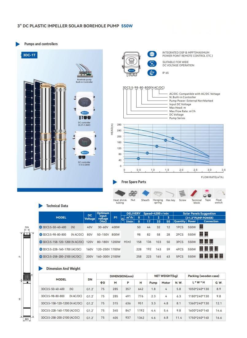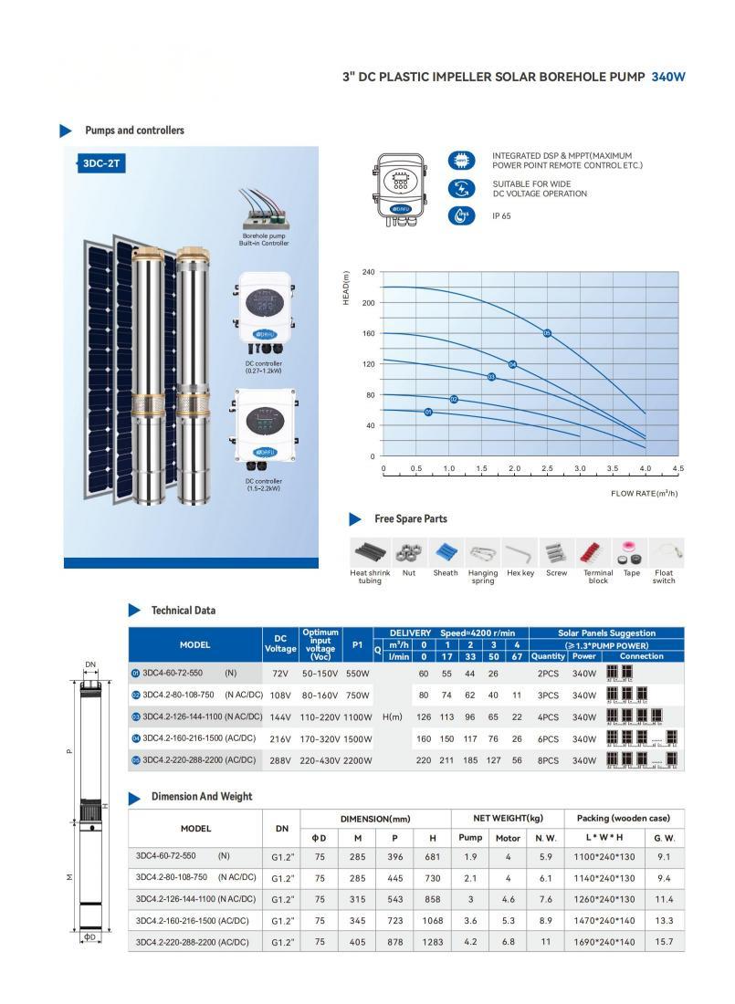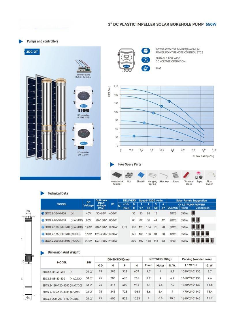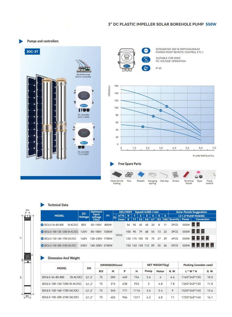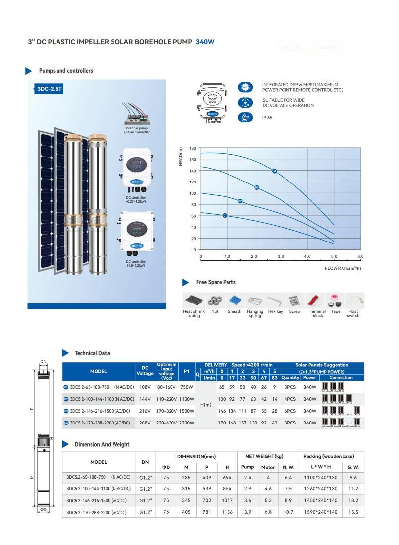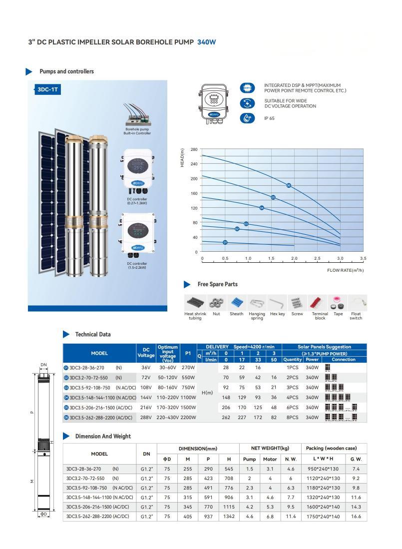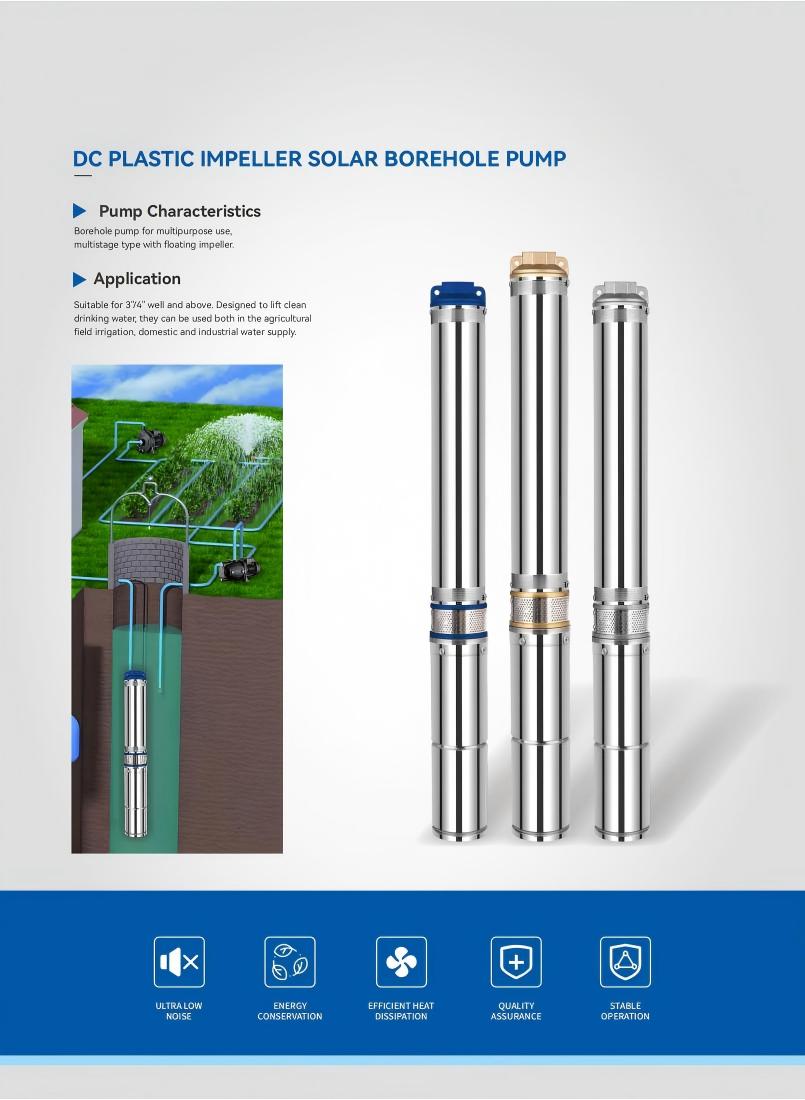 Les pompes solaires pour forages utilisent l'énergie solaire pour pomper et distribuer l'eau. Il s'agit d'une pompe immergée. C'est aujourd'hui la solution la plus intéressante pour l'approvisionnement en eau dans les régions ensoleillées du monde, notamment dans les zones reculées non desservies par l'électricité. Nos pompes submersibles sont principalement utilisées pour l'alimentation en eau domestique, l'irrigation agricole, l'abreuvement du bétail, le pompage dans les puits profonds et les forages, etc.