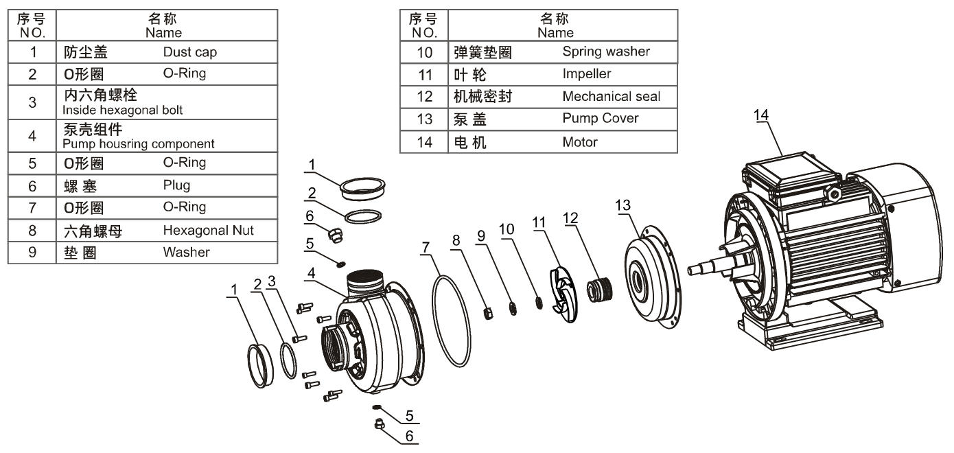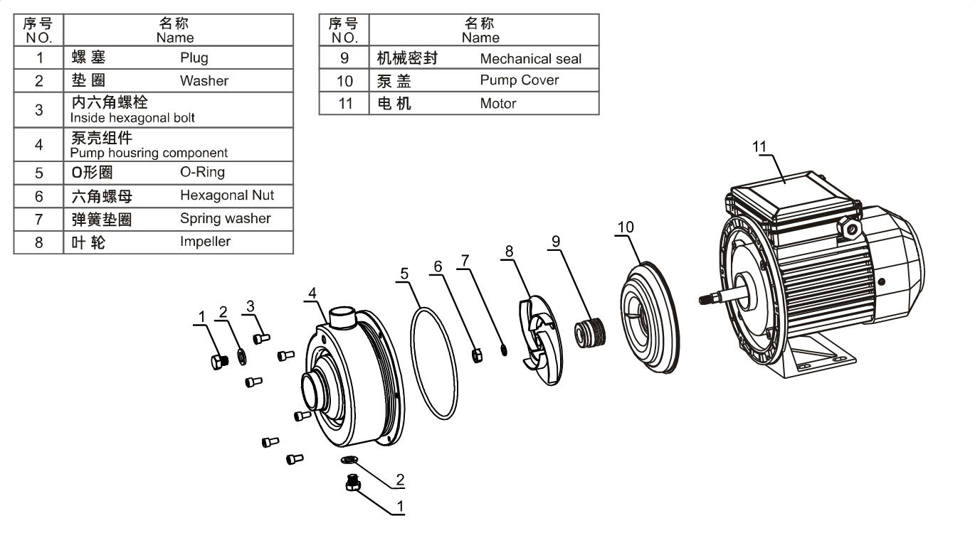 Pompe horizontale monobloc en acier inoxydable avec turbine ouverte