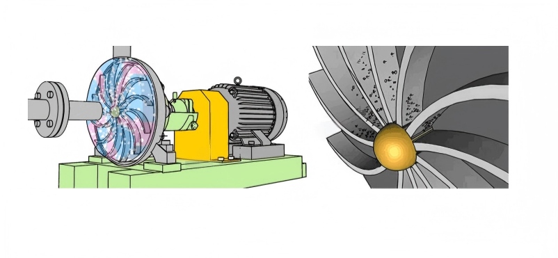 Usure de la roue : Lors du transport d'un liquide contenant des particules, la roue s'use progressivement, ce qui modifie son profil et réduit l'efficacité du transfert d'énergie.