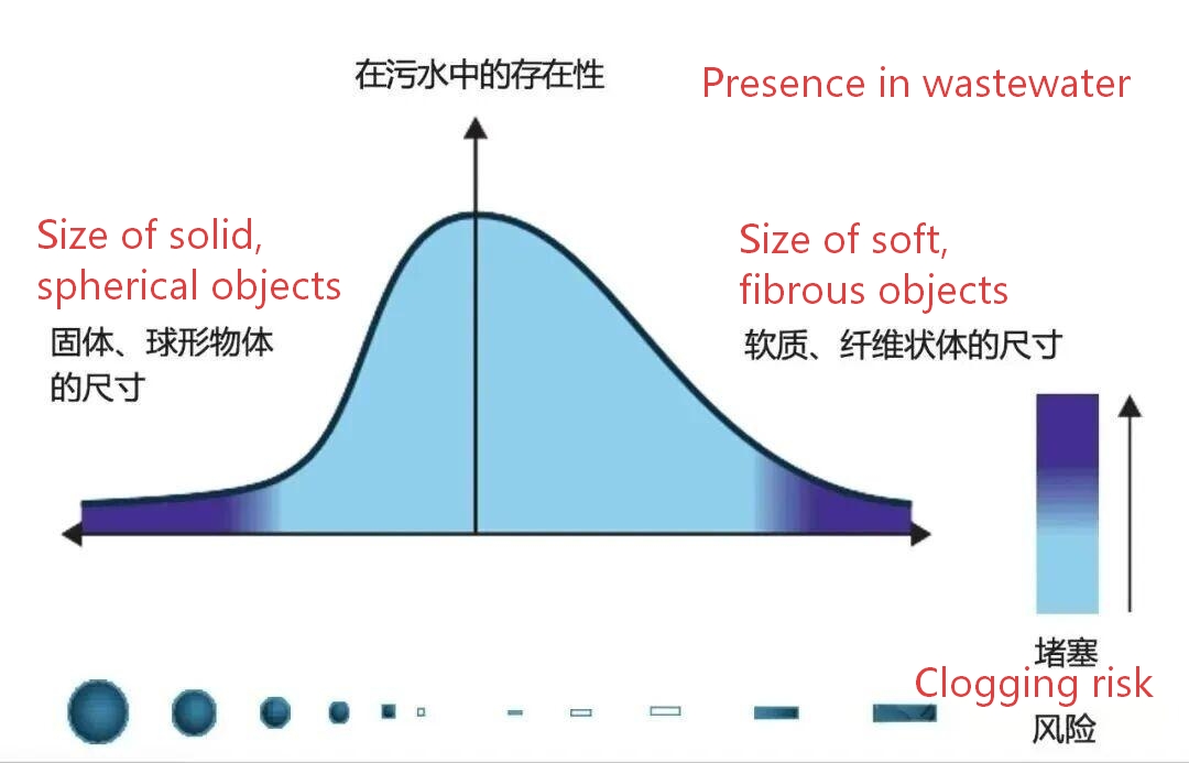 Des études et relevés détaillés des eaux usées modernes indiquent que celles-ci ne contiennent presque jamais de corps solides et sphériques d'un diamètre supérieur au diamètre intérieur du réseau de canalisations. Même lorsque ces corps pénètrent dans le réseau, ils se déposent ou s'accumulent généralement dans les zones à faible débit, sans jamais atteindre la pompe.