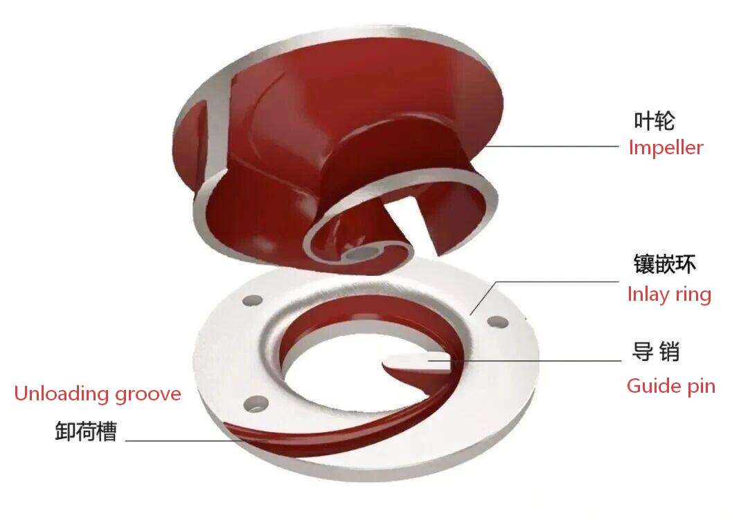 2. Les rainures de déchargement dans la bague d'insertion fonctionnent avec le bord d'attaque horizontal pour guider les solides hors de la roue.
