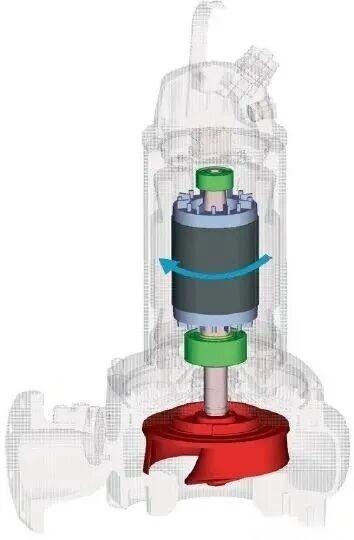 Pompes submersibles Les pompes à engrenages sont généralement entraînées par un moteur électrique couplé étroitement à la roue de la pompe, comme illustré à la figure 8. Au démarrage de la pompe, le courant circule dans les enroulements du stator, générant un champ magnétique rotatif qui fait tourner le rotor via l'arbre. Par conséquent, le moteur génère un couple proportionnel à sa puissance. Le couple est une grandeur physique qui définit la tendance d'une force à faire tourner un objet autour d'un axe ou d'un point.