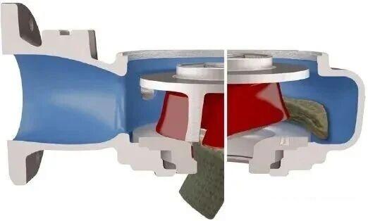Les turbines Vortex sont situées à distance du corps de la pompe, offrant ainsi un espace de volute suffisant, mais sont inefficaces lors du pompage d'eau propre et sale.